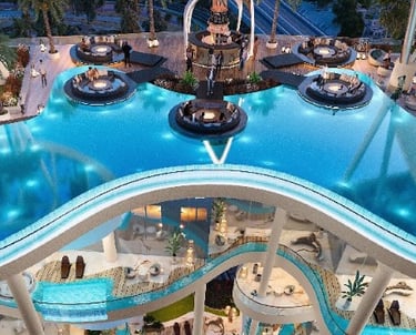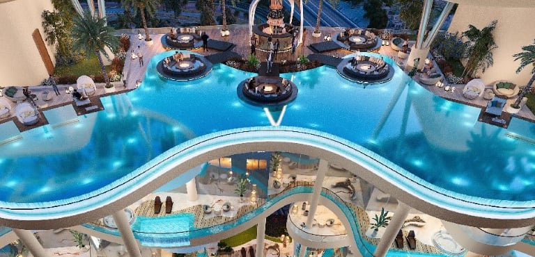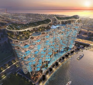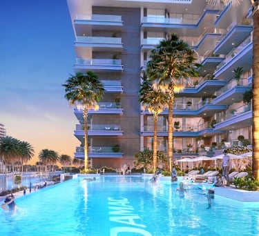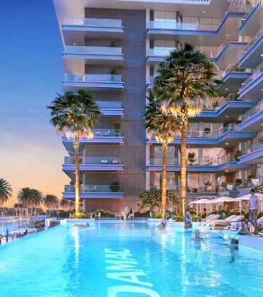 Apartamentos de alto padrão em Dubai com piscinas e lazer completo e vista para o mar em todos os apartamentos.