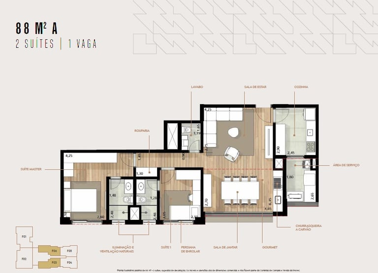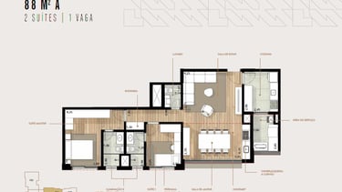 88 m² com 2 quartos