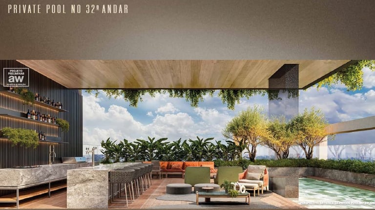 Lazer no 32° andar com vista para o Jardim Europa