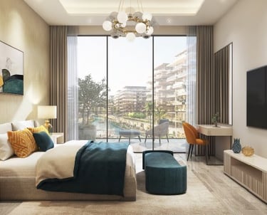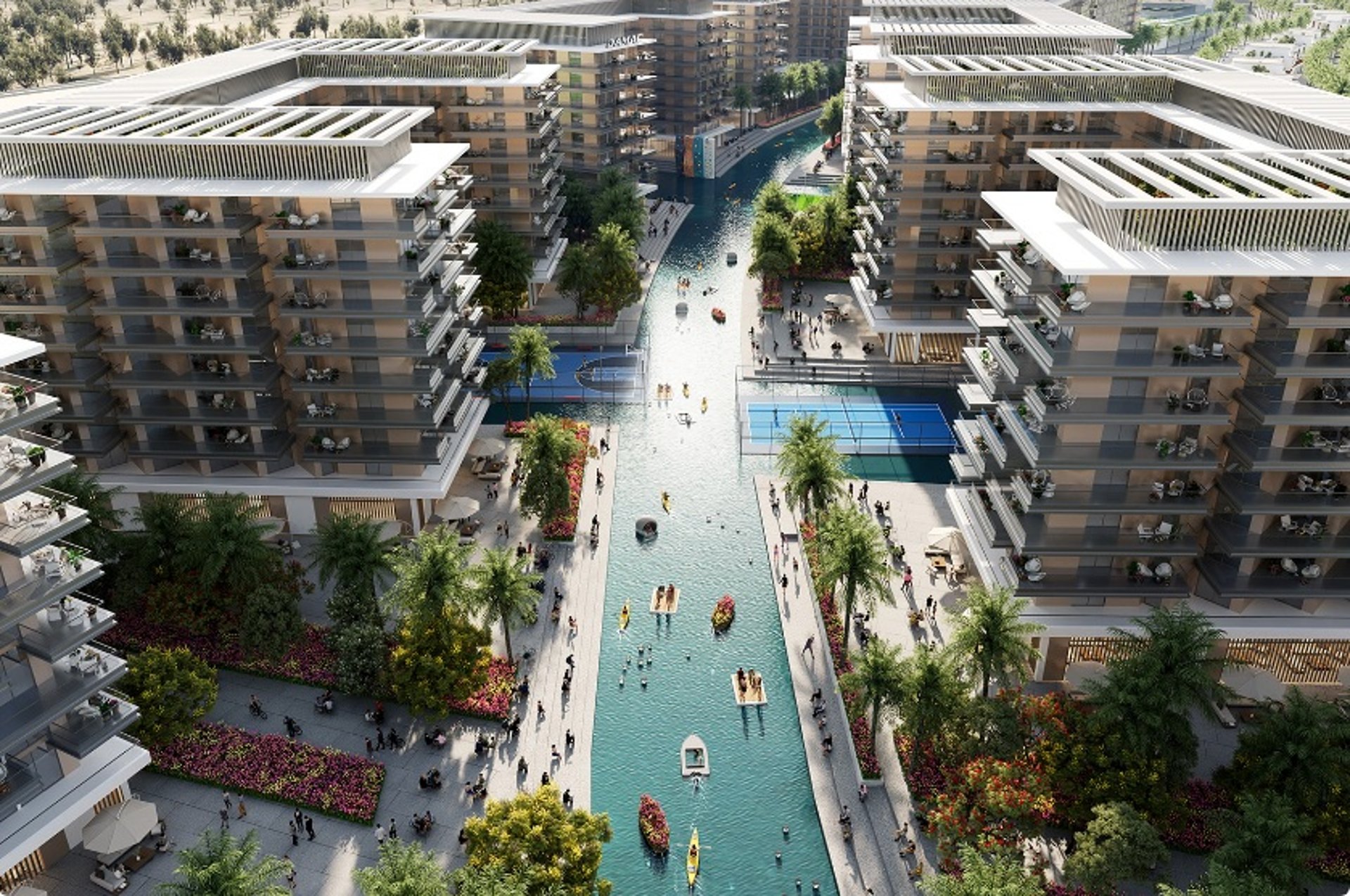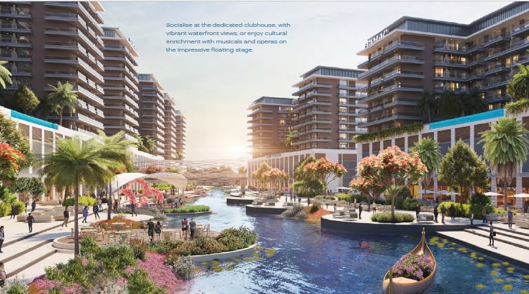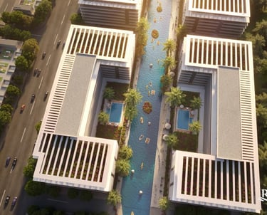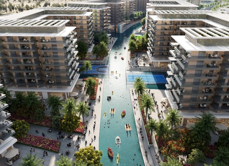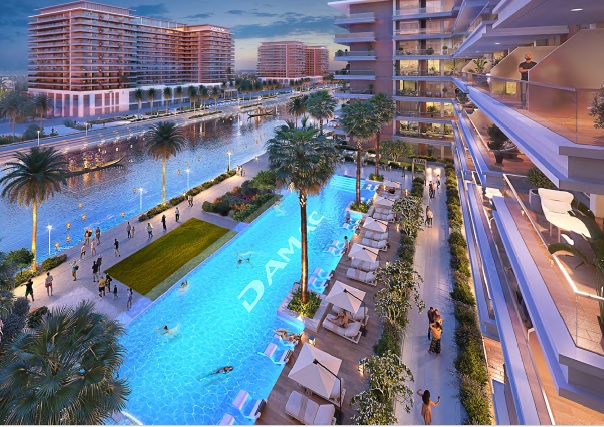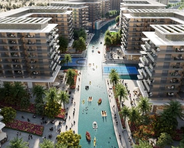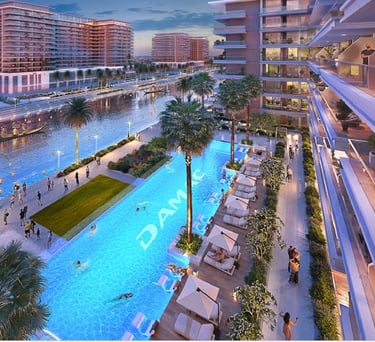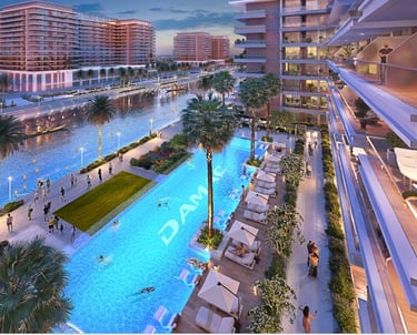 Apartamentos e studios em Dubai com rio construido para dar a melhor sensação de lazer, climatização e aproveitamento para atividades aquaticas. Cada apartamento com é projetado para ter o maior conforto neste projeto expetacular com vista para o rio.